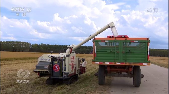 眼下,黑龙江农垦北大荒建三江红卫农场,正在抢收秋粮,在收割现场,三台协同作业的水稻收获机在指定地点自主转向掉头,并准确地将粮食装填到无人驾驶运粮机车上,运粮机车自主回仓卸粮,50亩水稻一个小时全部收割完毕。