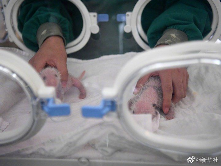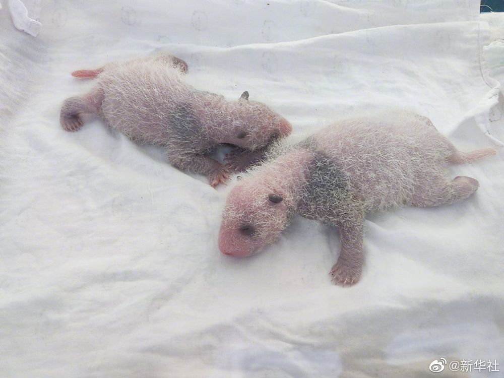 【刚出生的大熊猫长啥样?重庆动物园新生大熊猫龙凤胎首次亮相】重庆动物园23日首次对外公布该园近日新生大熊猫龙凤胎图片。两只幼仔出生于今年9月13日凌晨0:06分和0:22分。目前,它们生长良好,姐姐体重232克,弟弟体重306克。两只幼仔的母亲2013年8月23日出生于重庆动物园,取名为“好奇”。今年4月22日,“好奇”在中国大熊猫保护研究中心与大熊猫“芦林”自然交配。此次生产是“好奇” 的首胎,也是继今年6月大熊猫“莽仔”产下双胞胎后,重庆动物园今年迎来的第二对大熊猫双胞胎。(记者周文冲 重庆动物园供图)