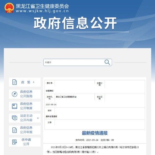 【#黑龙江23日新增本土确诊病例15例#】黑龙江省卫健委24日对外发布,9月23日0-24时,黑龙江省新增新冠肺炎本土确诊病例15例(哈尔滨市巴彦县15例)。截至9月23日24时,黑龙江省现有新冠肺炎本土确诊病例26例。(记者闫睿)