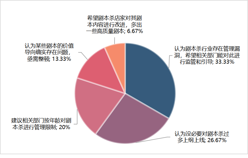 (一)认为剧本杀行业存在管理漏洞,希望相关部门能对此进行监管和引导,占比33.33%。典型网友评论如下: