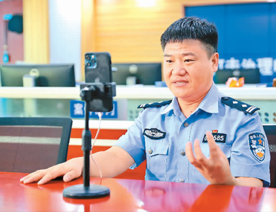9月5日,河北省秦皇岛市公安局海港分局反诈民警陈国平在直播中。曹建雄摄(人民视觉)