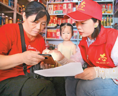 湖北省十堰市郧阳区融媒体中心志愿者在包联社区指导居民安装“国家反诈中心APP”。曹忠宏摄(人民视觉)