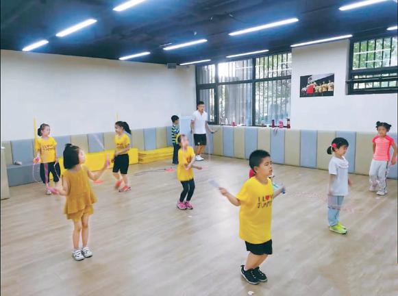 下课之后,孩子们在跳绳运动馆挥汗如雨。
