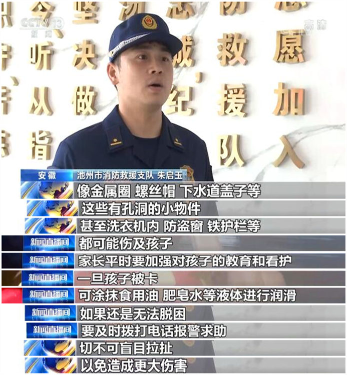 消防部门表示,孩子天性好动,一些成人看不起眼的物品,比如电梯门缝、座椅、铁护栏、防盗网、塑料管等都有可能给儿童造成意外伤害,家长平时应格外留意。