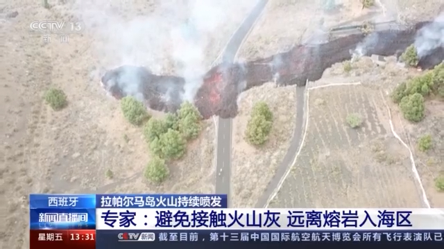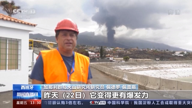 加那利群岛火山研究所研究员 佩德罗·佩雷斯:火山喷发仍在继续,没有减弱,它变得更有爆发力,可能仍然会继续喷发,会释放出更多的火山灰和气体。我们必须小心火山灰,因为它可以飘到很远的地方,这些细小的灰尘会损害呼吸道。