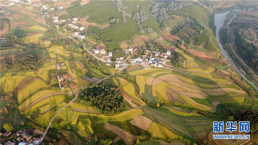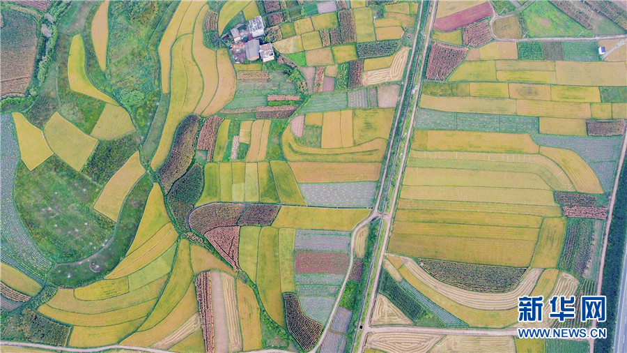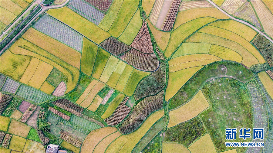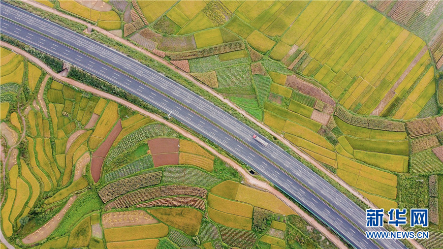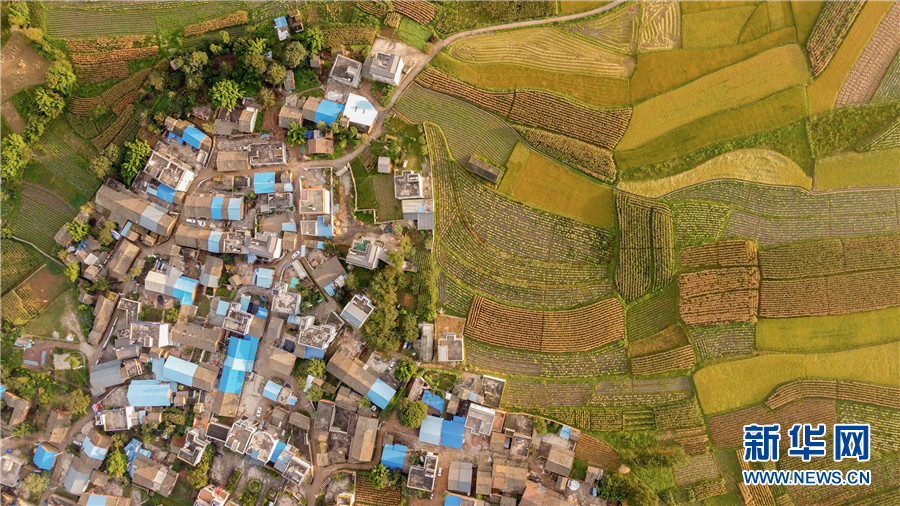 金秋时节,云南省曲靖市沾益区,水稻、玉米等农作物相继成熟,田野尽染丰收色彩,农民脸上洋溢着幸福的喜悦。新华网发(杨俊鹏摄影报道)