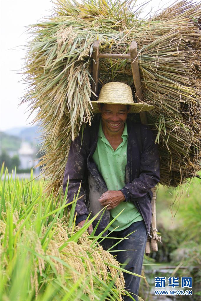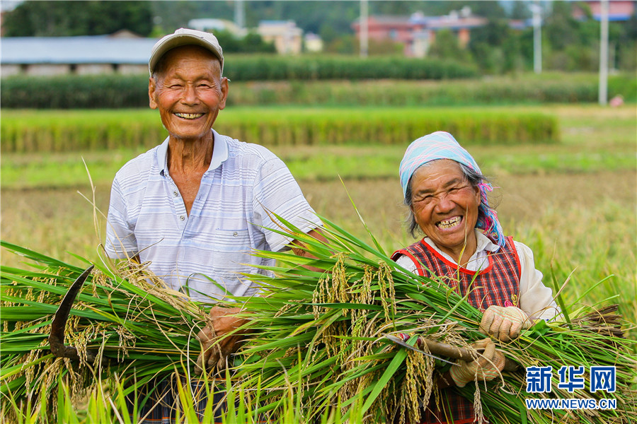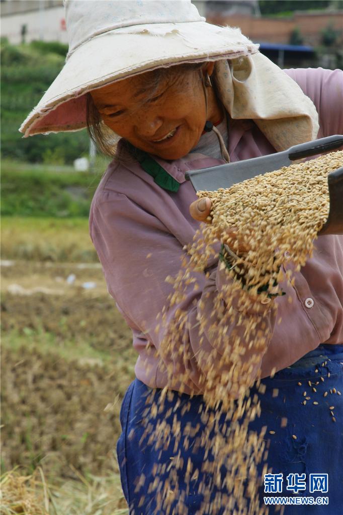 云南省曲靖市沾益区德泽乡热水村稻谷喜获丰收(9月4日摄)。新华网发(杨俊鹏 摄)