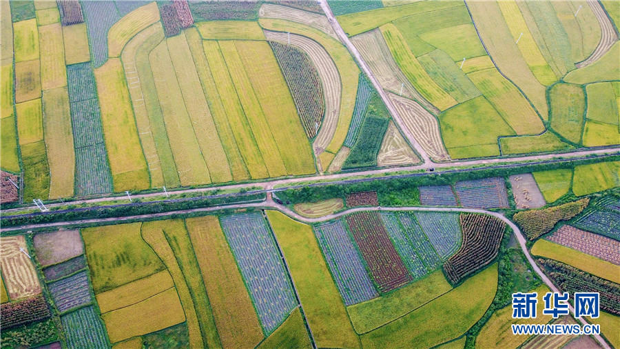 航拍云南省曲靖市沾益区龙华街道石羊社区田野(9月15日摄)。新华网发(杨俊鹏 摄)