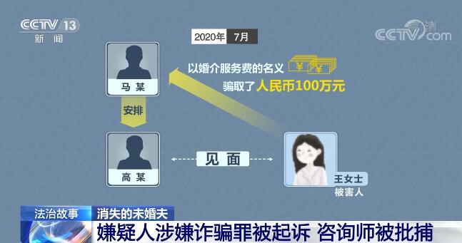 经检察机关核实,2019年11月,马某安排高某与李女士见面,以婚介服务费的名义骗取了被害人李女士人民币20万元。此外,高某在与李女士交往期间以投资借款的名义骗取被害人人民币100余万元。2020年7月,马某安排高某与被害人王女士见面,并以婚介服务费的名义骗取被害人王女士人民币100万元。从高某与马某的聊天记录中看出,截至案发时,高某同时交往了7名女性。2021年8月6日,北京市海淀区人民检察院对高某以涉嫌诈骗罪向北京市海淀区人民法院提起公诉,而马某则被批准逮捕做另案处理。