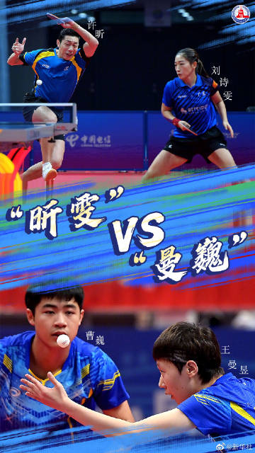 【就在今晚!#昕雯vs曼巍#】第十四届全运会乒乓球混合双打金牌赛将在今天20:15上演,许昕、刘诗雯的“昕雯”组合对战曹巍、王曼昱的“曼巍”组合,转发为他们加油!你更看好哪个组合?#要追就追这样的星#