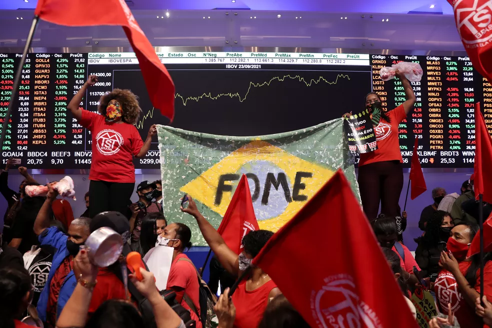 当地时间9月23日下午,巴西无住房工人组织占领了位于该国金融中心圣保罗市的证券交易所,以抗议目前面临的失业、饥饿和通胀问题。