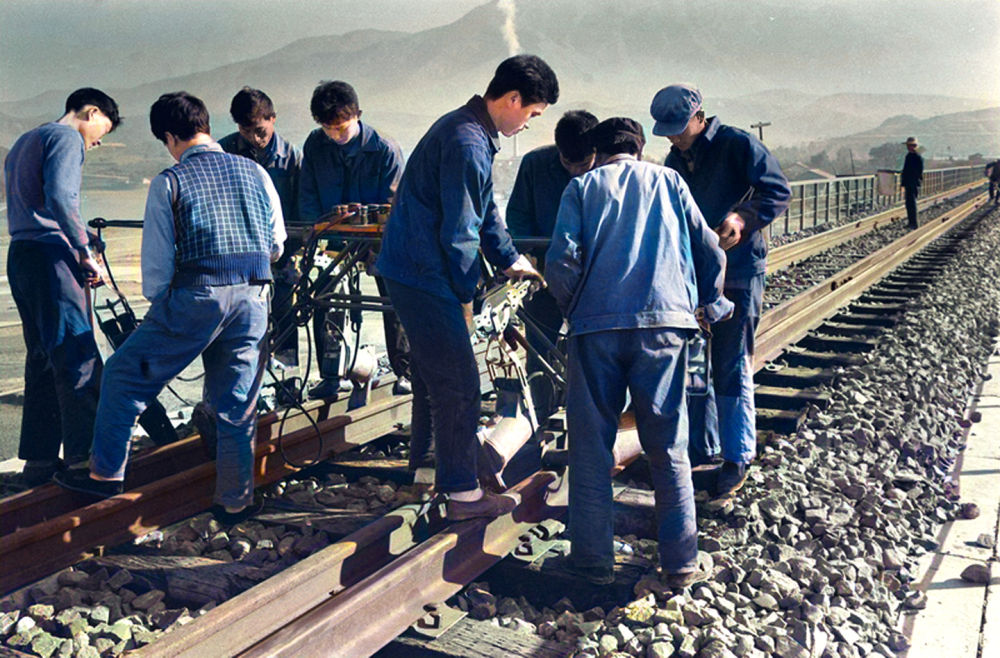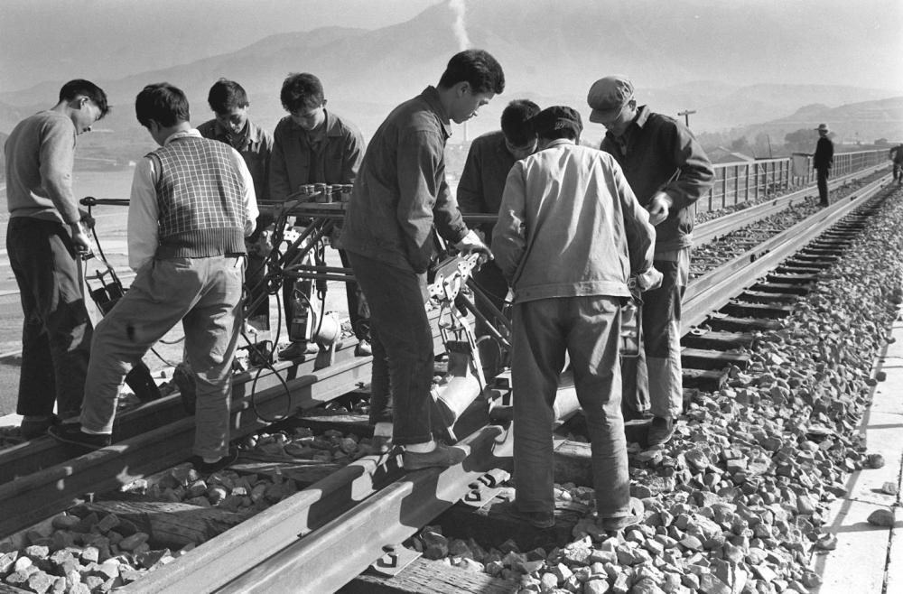 成昆铁路米易工务段的工人在使用机械养路。新华社发