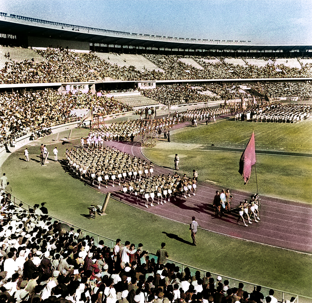 图为1959年9月13日第一届全运会运动员在开幕式上列队步入会场。新华社发