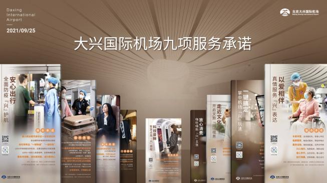 在9月25日投运两周年之际,北京大兴国际机场深入贯彻落实“我为群众办实事”的工作要求,对九项服务承诺进行升级,并向社会公众郑重发布。此次大兴机场联合各驻场单位共同发布的服务承诺,涉及疫情防控、服务效率、抵离交通、中转便利、智慧服务、掌上机场、商业品质、文化传承、真情关爱等九个方面,致力于向公众提供更具多元化的服务策略和服务产品,努力让广大旅客享受到更高品质的民航服务,切实增强在大兴机场出行的获得感、幸福感。