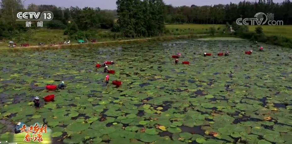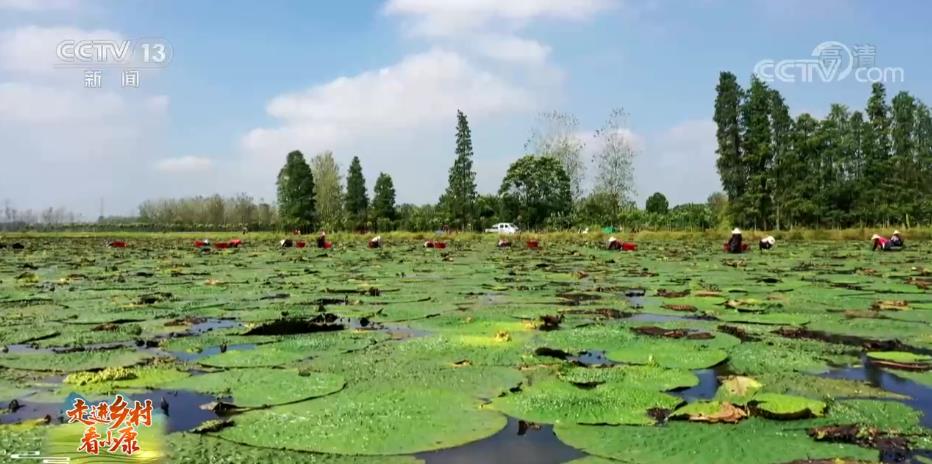 央视网消息:眼下,位于河南潢川县付店镇的芡实迎来丰收季。一个个芡实池塘宛如巨大的绿色地毯,芡叶圈圈盛开,布满水面,农民正忙着收割芡实。
