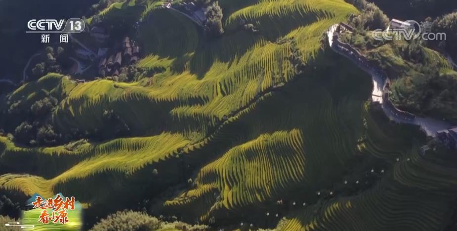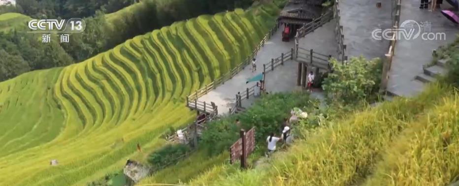 央视网消息:位于广西龙胜各族自治县的大寨村,是龙脊梯田的所在村之一。9月的龙脊梯田,层层叠叠的水稻铺满山坡。在梯田不远处,这些黛瓦木质小楼,就是村民的家。