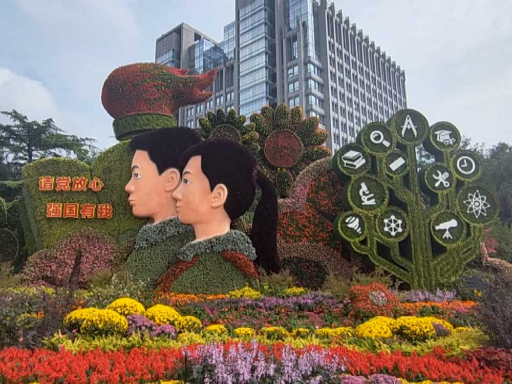 在今天亮相的国庆景观布置中,长安街沿线的10组花坛也惊艳亮相,吸引大量过路市民的合影留念。长安街沿线的10组花坛从东向西主题分别是“继往开来”、“强国有我”、“高质量发展”、“创新引领”、“命运共同体”、“绿色发展”、“和谐共生”、“乡村振兴”、“喜迎冬奥”、“伟大征程”。其中东长安街5处花坛主题围绕弘扬伟大建党精神,开创新时代中国特色社会主义美好未来,西长安街的5处花坛主题围绕“以人民为中心”,展现了“江山就是人民、人民就是江山”的四季画卷。其中,东单西北角的“创新引领”主题花坛,以中国宇航员探索太空奥秘为主景,配以空间站、“祝融号”火星车、机械臂等,生动展示通过科技自立自强,实现国家强盛。西单西北角的“乡村振兴”主题花坛,以秋季的丰收景象为主景,展现出产业兴旺、生态宜居、乡风文明、治理有效、生活富裕的中国特色社会主义乡村振兴新篇章。