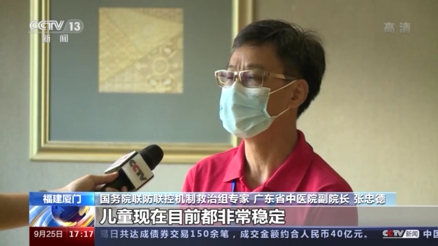 国务院联防联控机制救治组专家 广东省中医院副院长 张忠德:儿童现在目前都非常稳定。还有个别的有发烧。新收的一两个还有发烧。部分患者还有一点咳嗽,其他都非常好。老人家现在的病情也是平稳向好之中。
