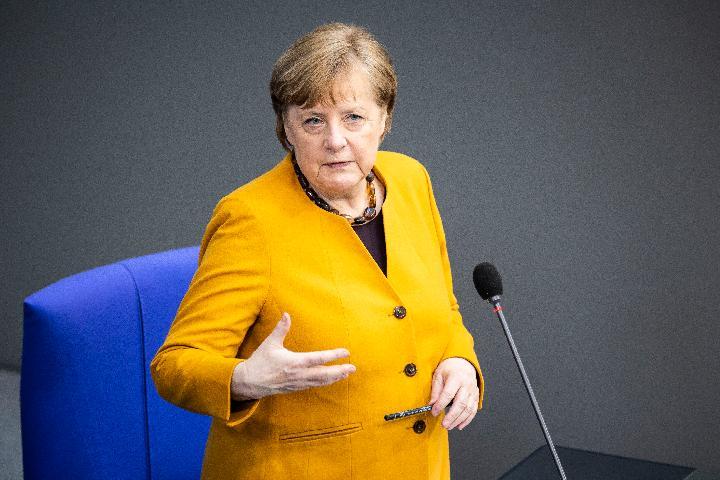3月24日,德国总理默克尔在议会接受问询。(新华社发,弗洛里安·格特纳摄)