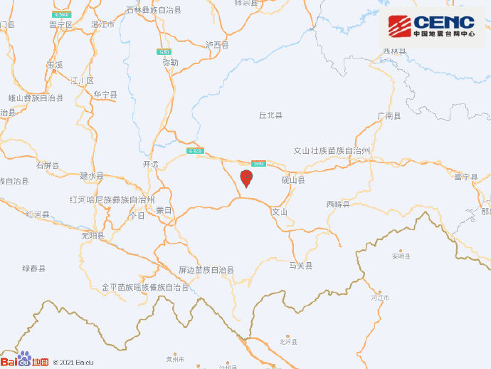 据中国地震台网正式测定,9月25日23时23分在云南文山州文山市发生2.9级地震,震源深度10千米,震中位于北纬23.58度,东经103.99度。震中5公里范围内平均海拔约1435米。