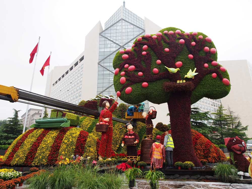 迎国庆!北京长安街沿线立体花坛惊艳亮相。