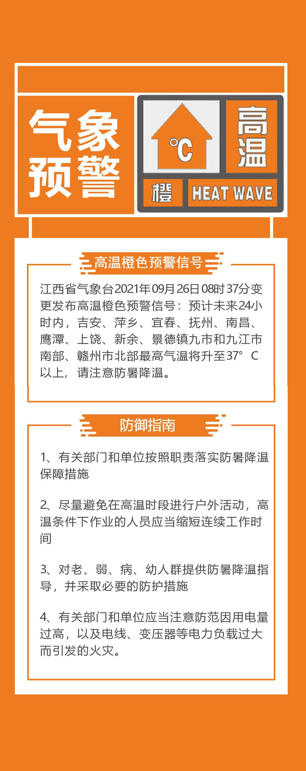 预计未来24小时内,江西省大部分地区最高气温将升至37℃以上。