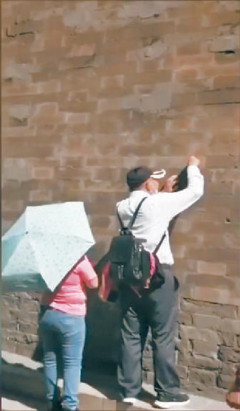 9月21日,有市民发现,一名男子在故宫西华门城墙砖上刻字,遂上前制止。受到指责后,这名男子的同行者连忙道歉。目击者将这一情况反映给了故宫工作人员。此事在网络上曝光后迅速引发热议,有网友直言“手这么欠,一声道歉就完了?应该进黑名单!”