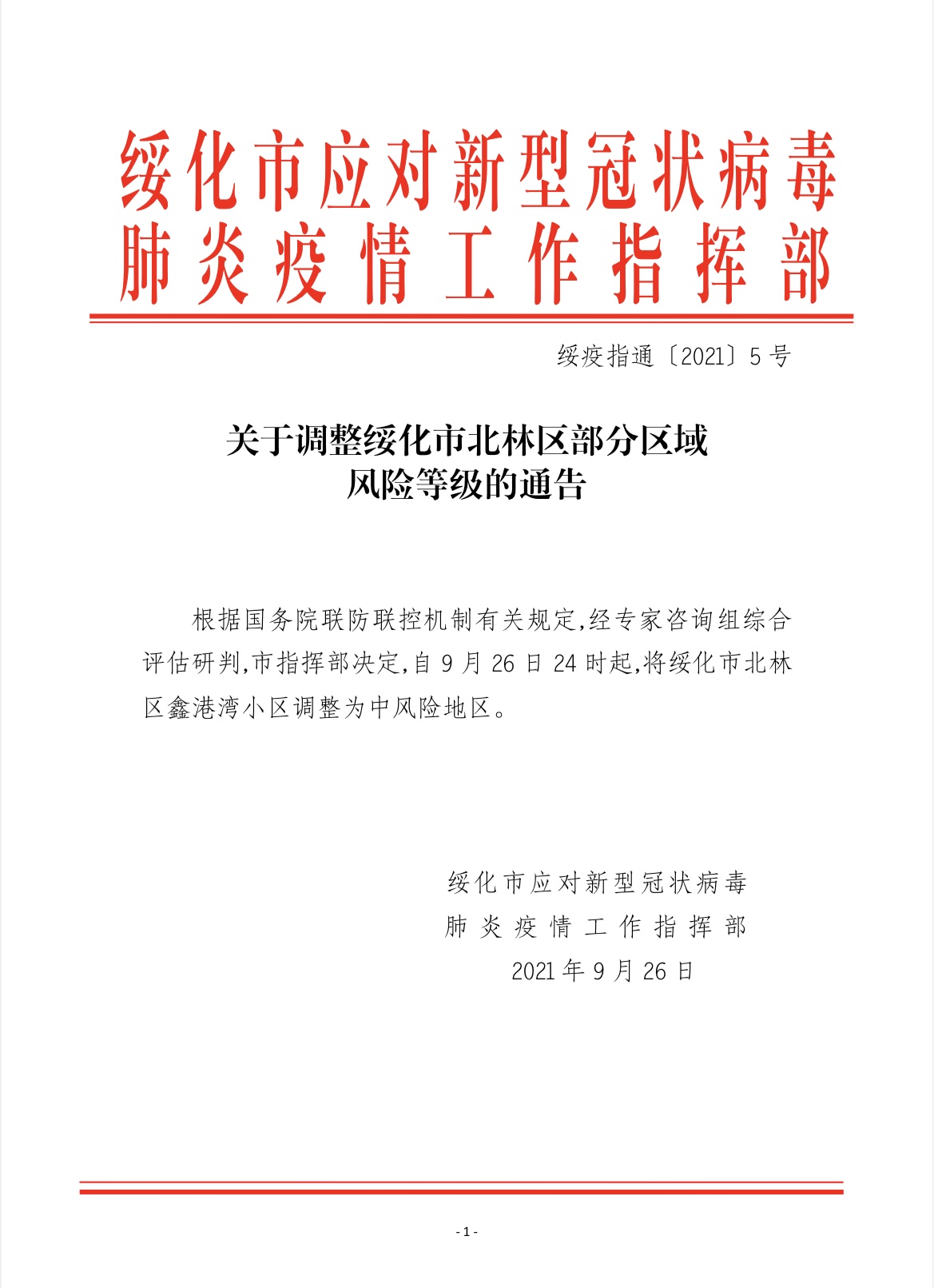 央视网消息(记者 李文学):记者从9月26日上午黑龙江省绥化市召开的疫情防控专场新闻发布会上获悉,9月25日0-24时,在对集中隔离人员核酸检测中检出3例阳性感染者,其中:确诊病例1例(轻型)、无症状感染者2例,3人均为巴彦县某确诊病例密接人员,共同居住在绥化市北林区鑫港湾小区,目前均已转运至哈医大一院群力院区接受医学观察。