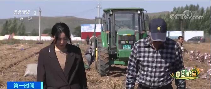 中秋后的第一天,察右后旗朝阳村马铃薯地里,一大早收割机就开始工作。这种红色的马铃薯就是当地的特色品种——后旗红,工人们正以两种不同的形式进行分拣,一头是麻袋装的,一头是纸盒装的。这块地的种植户郭润和女儿郭晨慧一早就来到地里,查看马铃薯的分拣情况。