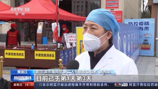 哈尔滨市南岗区第二人民医院副院长 赵秀荣:整个居家医学观察14天之内要完成6次核酸检测,目前已于第1天和第3天完成了两次核酸检测任务,结果均是阴性,今天(25号)是进行第三次的入户核酸采样工作。