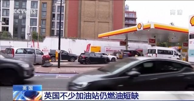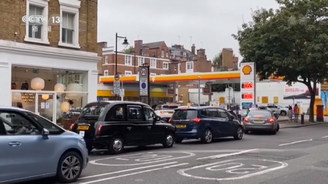 最近几天,英国不少加油站前等待加油或想要囤油的汽车排起长队。当地时间25日,伦敦不少加油站的燃油仍然供不应求。