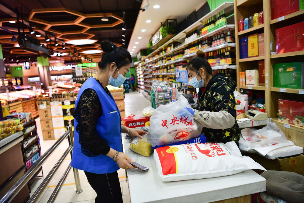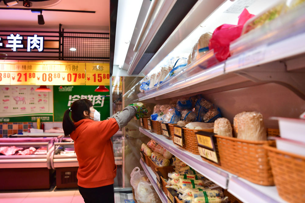 在兴隆镇一处超市中,工作人员正忙着拿油、称肉、挑萝卜,为线上订货的居民打包生活物品。为应对当前疫情形势,兴隆镇全镇各小区实行封闭管理。居民购买生活用品自行联系超市,并由各超市负责配送到各小区疫情服务站后由社区工作人员或志愿者送达。
