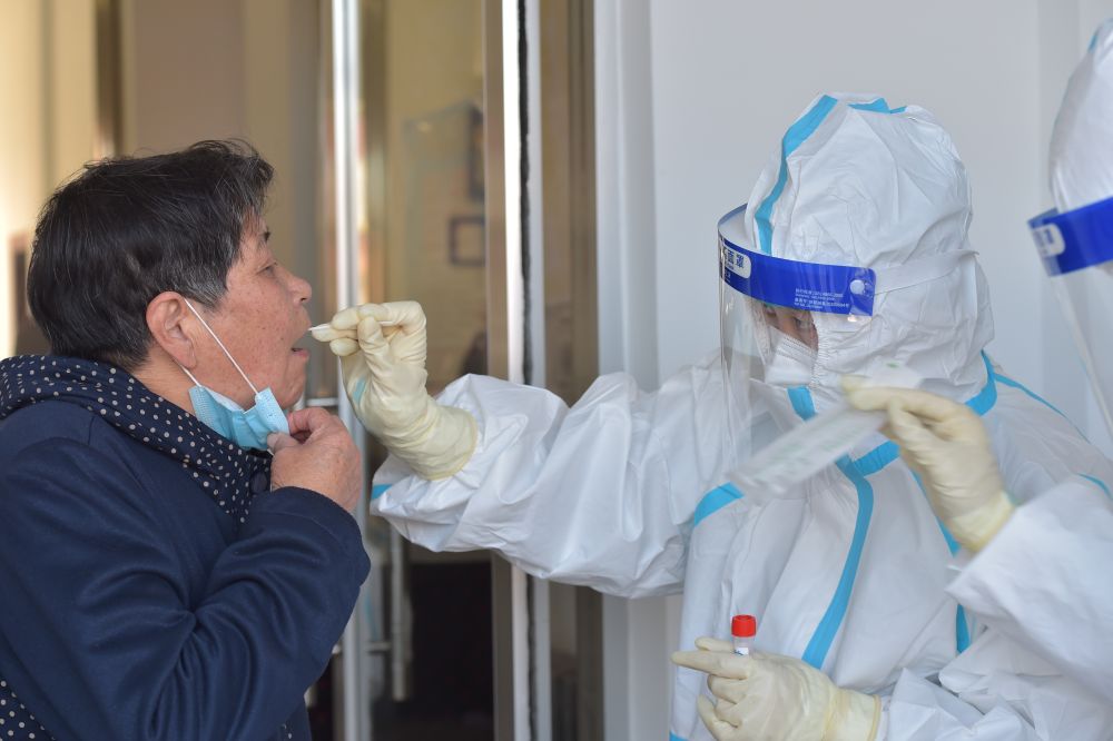 在该核酸检测点,兴隆镇的居民保持间隔排队等候,社区工作人员疏导现场秩序,医务人员为居民进行信息登记、核酸检测采样,现场紧张而有序。兴隆镇党委书记于广勇说,哈尔滨市正调配60辆大巴车支援兴隆镇,两辆车为一组,组成30个流动核酸检测点,方便当地居民就近进行核酸检测采样。
