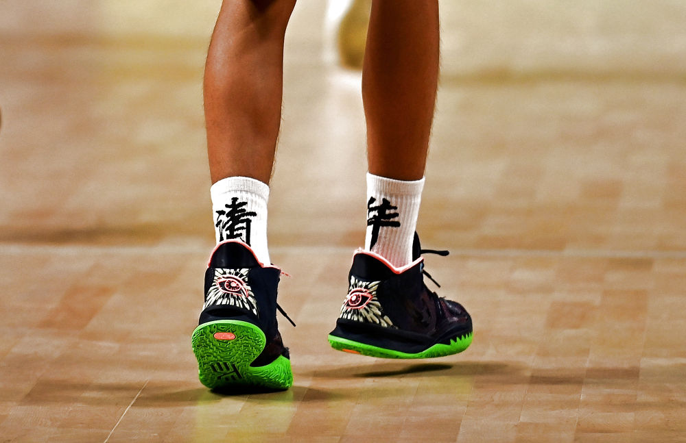 ⬆️这是9月18日在全运会五人制篮球男子19岁以下组比赛中拍摄的辽宁队球员逄砚钧的球袜。