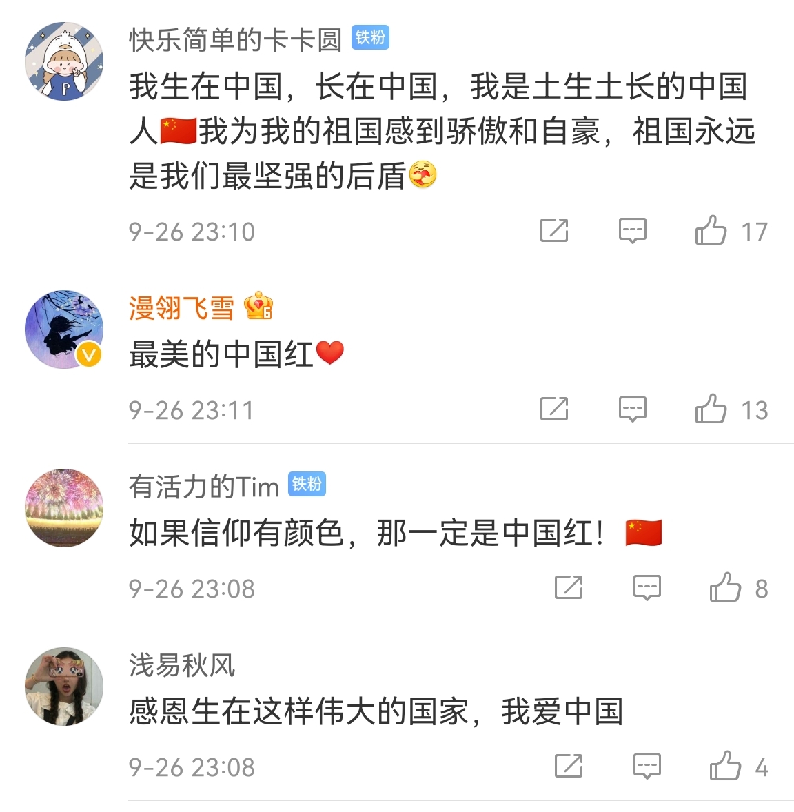 网友Feimigxing费明星:当你为国家感到自豪时,你的同胞也在为你感到自豪。