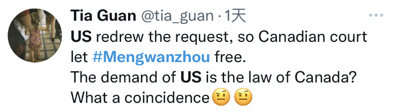 更有网友表示,孟晚舟的回归象征着美国对中国公民政治迫害的失败。
