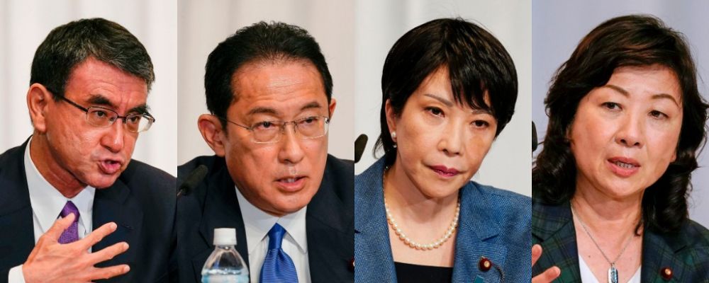 自民党总裁选举定于29日投票。行政改革担当大臣河野太郎、前外务大臣岸田文雄、前总务大臣高市早苗和自民党代理干事长野田圣子4名候选人角逐党首之位。
