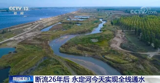 央视网消息:今天(9月27日)上午10时30分,随着天津市屈家店枢纽开闸,永定河水顺利入海,至此,全长865公里的永定河实现全线通水,这也是永定河自1996年断流以来首次实现全线通水。