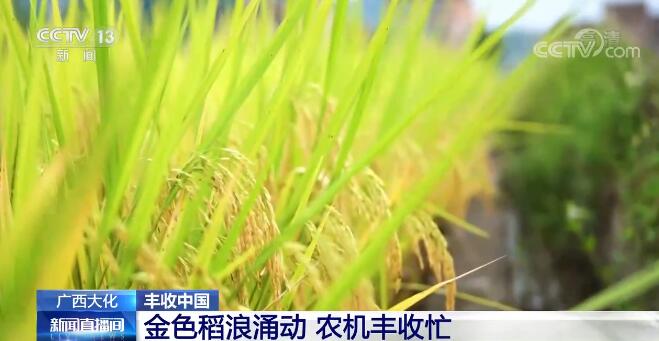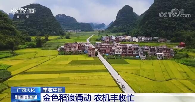 眼下,在广西大化瑶族自治县共和乡的田野上,处处涌动着金色的稻浪,收割机来回穿梭,一幅美丽乡村丰收图在田间地头生动铺展。