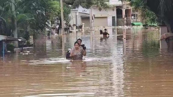 受持续降雨影响,缅甸克伦邦当英河水位自当地时间9月26日夜开始持续暴涨,妙瓦底地区上千栋民房被洪水淹没。