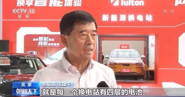 参展商 张建平:原来是以面积来说,就是每一个换电站有四层的电池,现在做到了七层,甚至做到了十二层,所以占地面积小了三分之二。