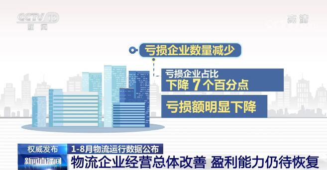 央视网消息:调查显示,物流企业业务保持恢复增长势头,相关收入有所改善,亏损企业数量持续减少,但小微企业盈利水平恢复依然相对较慢。