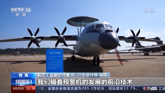 航空工业副总经理 歼-20总设计师 杨伟:在战略预警方面,我们瞄着预警机的发展的前沿技术,立足国内发展了包括像空警-500等一系列的新一代的预警机,战略预警的能力大幅增强。除此以外,在空天能力方面,我们高空高速无人机,实际上在阅兵的时候,我们也展示了完成了研制,实现了迈向空天一体的目标的突破。