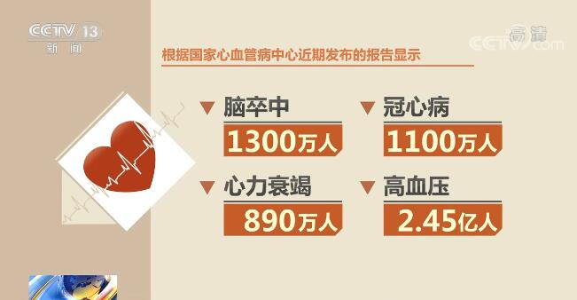 根据国家心血管病中心近期发布的报告显示,中国心血管病患病人数约3.3亿,其中脑卒中1300万,冠心病1100万,心力衰竭890万,高血压2.45亿。
