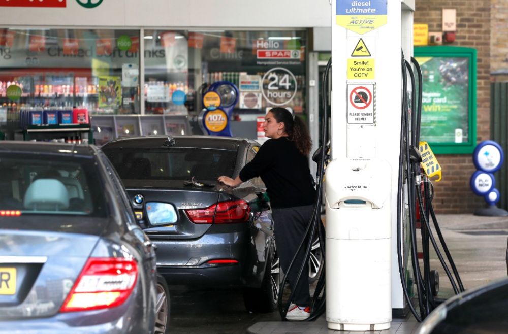 9月27日,一名女子在英国伦敦一家加油站加油。(新华社记者韩岩摄)