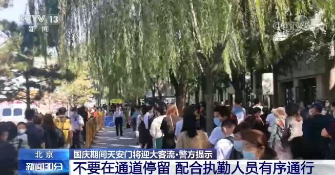 警方提示,国庆期间,为防止人员过度密集,请游客不要在天安门城楼门洞、地下通道、金水桥、广场出入口等通道停留。如果出现拥堵,公安机关将采取临时限行措施,请积极配合现场执勤人员的工作,按照疏导路线有序通行。