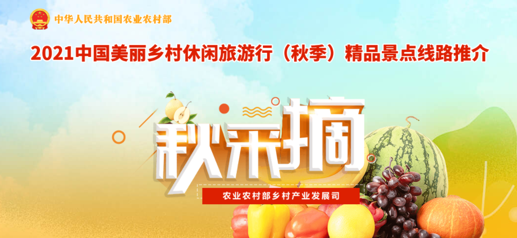 今年,农业农村部继续开展“中国美丽乡村休闲旅游行”推介活动,相继推出春季、夏季精品景点线路。此次推出的秋季乡村休闲农业精品景点线路,结合举办第四个中国农民丰收节,突出“秋采摘,品丰收硕果”,吸引城乡居民在美丽乡村休闲体验中感受丰收喜悦,体悟乡土情怀。
