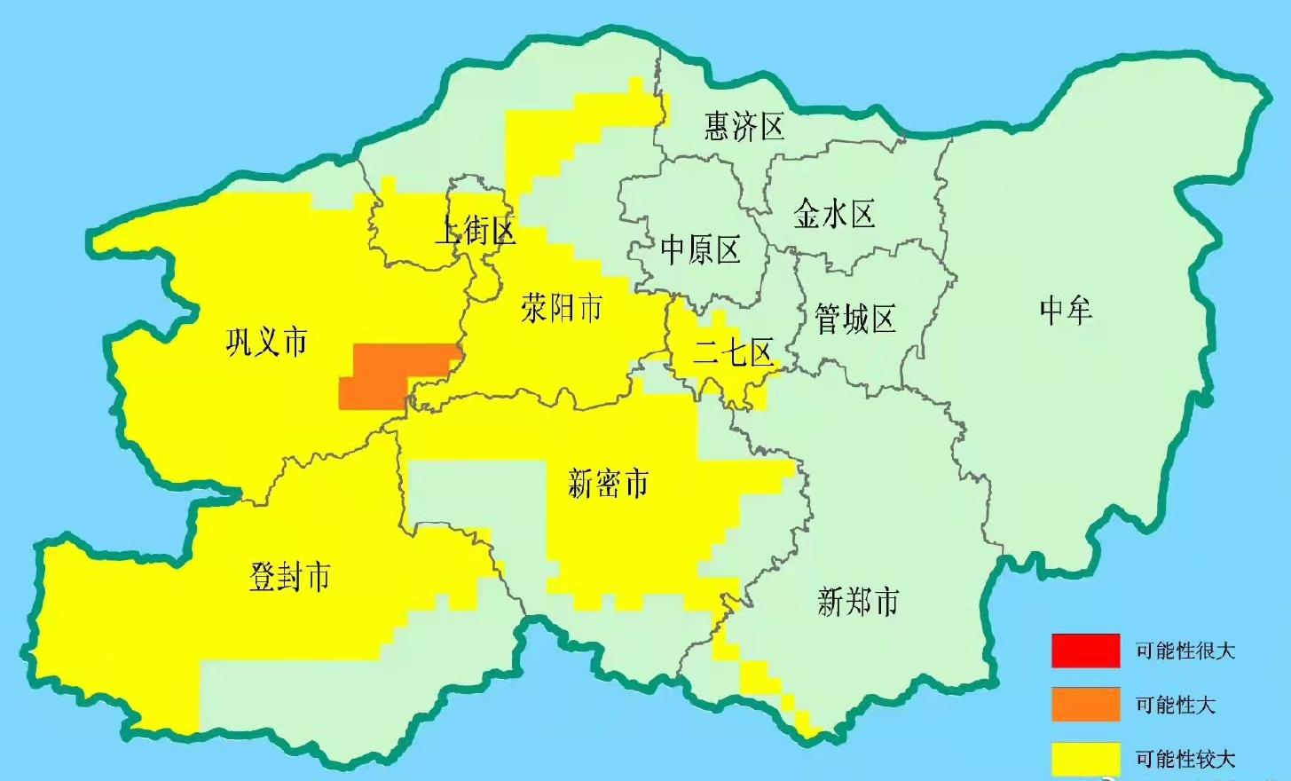 河南郑州市自然资源和规划局、郑州市气象局日前联合发布汛期地质灾害预警预报:今晚到明天,郑州市地质灾害预警预报达到橙色预警的地区为:巩义东南部,发生地质灾害的可能性大。郑州市地质灾害预警预报达到黄色预警的地区为:巩义、登封、荥阳、新密、上街区大部,二七区西南部,新郑西北部及西南部,惠济区西部,发生地质灾害的可能性较大。