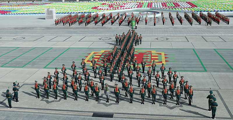 27日,别尔德穆哈梅多夫检阅本国军队并发表国家独立30周年贺词。他表示,30年来,土库曼斯坦综合国力不断提升,民众生活水平持续改善,探索出了一条不断增强经济竞争力的道路。