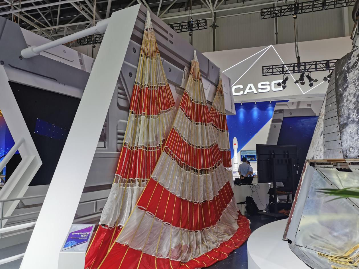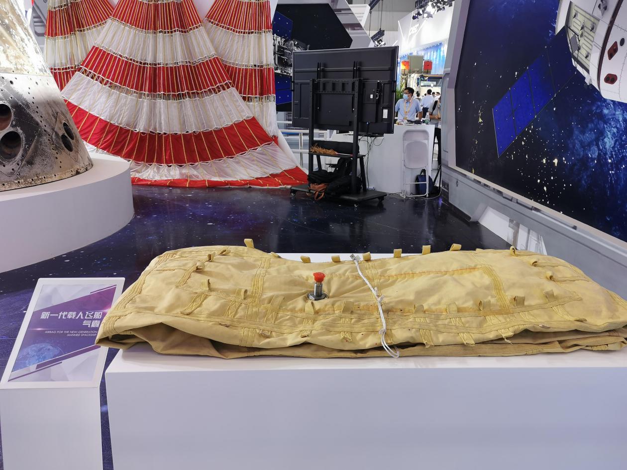 在第十三届珠海航展上,3顶红白相间的大降落伞和6个大型缓冲气囊特别醒目,吸引了观展人员的驻足观看。它们是中国航天科技集团五院展示的新一代载人飞船试验船回收着陆系统。